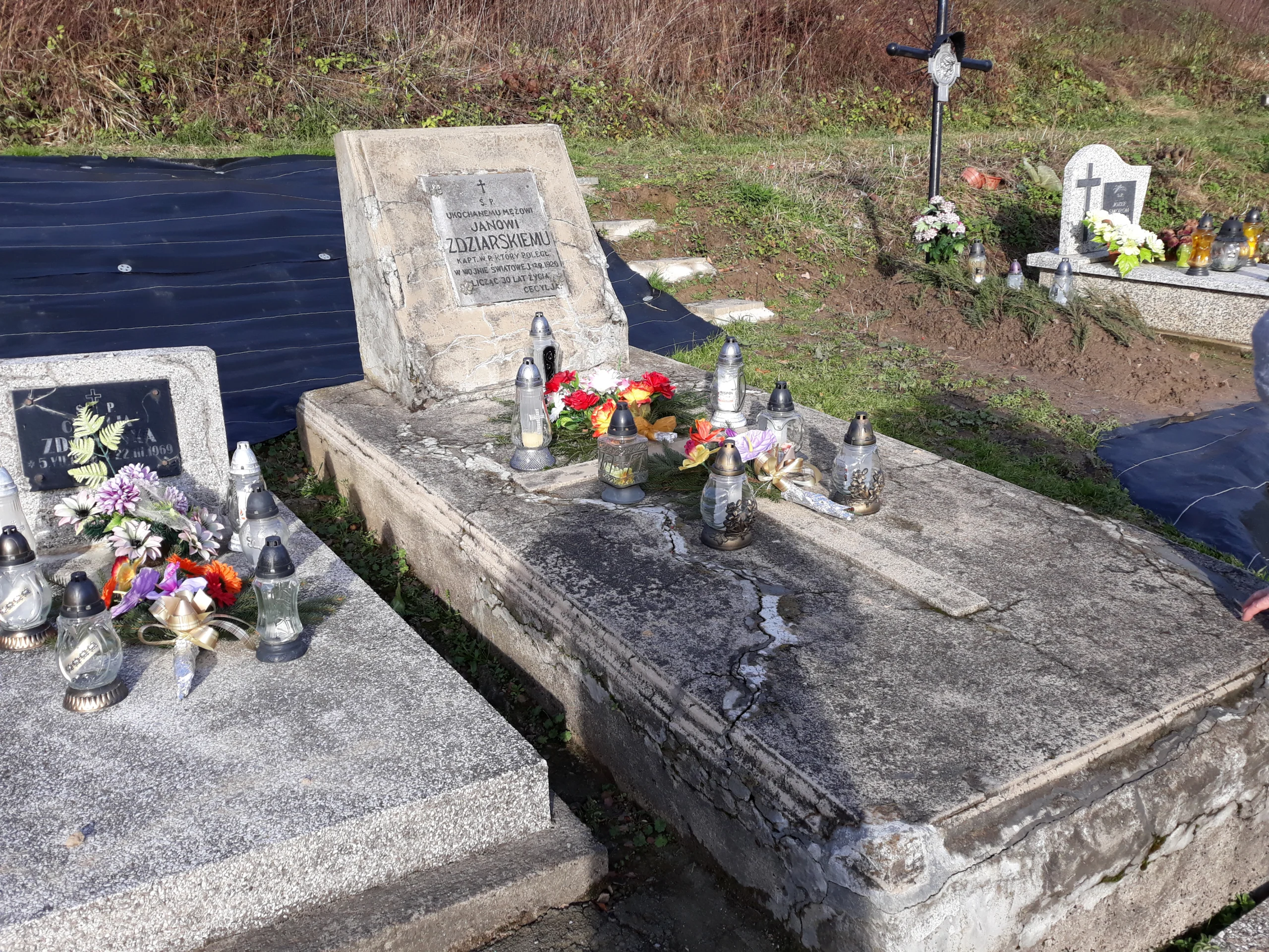 Jan Zdziarski poległ w okolicach Warszawy w wojnie polsko-bolszewickiej. Po zakończeniu walk ciało zostało sprowadzone w rodzinne strony i pochowane na cmentarzu parafialnym. Na mogile, staraniem żony, wzniesiono kamienno-betonowy nagrobek, którym opiekowała się rodzina. Na szczycie ustawiony był cokół z tablicą inskrypcyjną:
