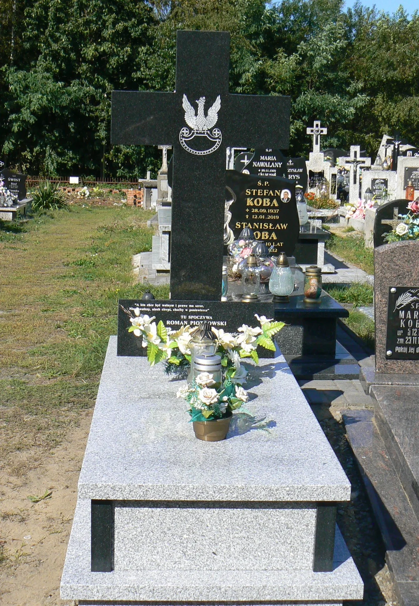 W miejscu śmierci pochowanego ustawiony jest pamiątkowy krzyż.